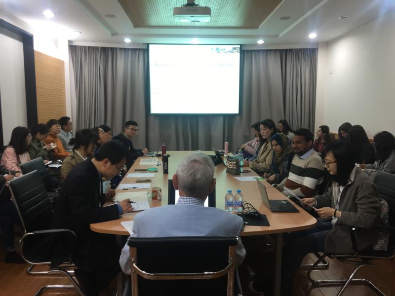 在互动环节,我院尚必武教授、苏坤教授等师生就诗歌研究、文本细读等话题,与布朗教授进行了深入交流。