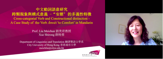 刘美君教授的发言题目是“中文动词语义研究:跨类现象与构式意义——‘安慰’的多义性特征”,由苏新春教授主持。刘教授首先介紹其多年对汉语动词的系统性研究成果,并分享中文动词语义网的建构情况。她基于框架语义和构式语法理论,提出了“框架为本,构式为用”的研究路径,将其运用于具体的汉语动词研究课题。针对动词跨类现象,刘教授特别举例说明了中文放置动词所展现的语义语法范畴,揭露事件因果链的延伸关系,体现出致使移动与致使置放的构式差异。刘教授同时介绍了中英情绪动词的差异,并重点考察了“安慰”在句法语义上的跨类表现。基于语料考察,“安慰”可参与多样的构式,具有多重语义,既可表达致使情绪,也可表达情绪结果状态,呈现出致使-变化的复杂因果链接关系。此外,“安慰”表现了情感动词与言谈动词的跨类互动:从安慰的方式扩展到言谈内容,再进入兼语式取得操控义,表达建议行为;另外经由言谈动量的标记,进入双及物式表达授予义,揭示出“安慰”的语义特征及认知机制。刘教授最后指出,跨类动词研究所揭示的语义延伸路径有助于体现人类最基本的认知原理,此外,中文动词语义研究对语言学理论的发展和应用都有深远的意义。