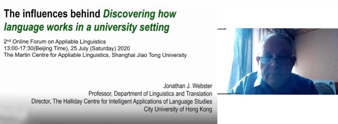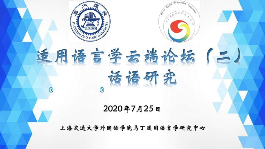 7月25日下午,由best365官方网站登录入口马丁适用语言学研究中心(马丁中心)主办的“适用语言学云端论坛(二)话语研究”顺利举行。此次论坛由北京大学胡壮麟教授、复旦大学祝克懿教授、中国传媒大学赵雪教授、中国海洋大学于国栋教授、香港城市大学Jonathan Webster教授作主旨发言。论坛吸引了来自国内外近600名学者、高校教师和研究生参加。