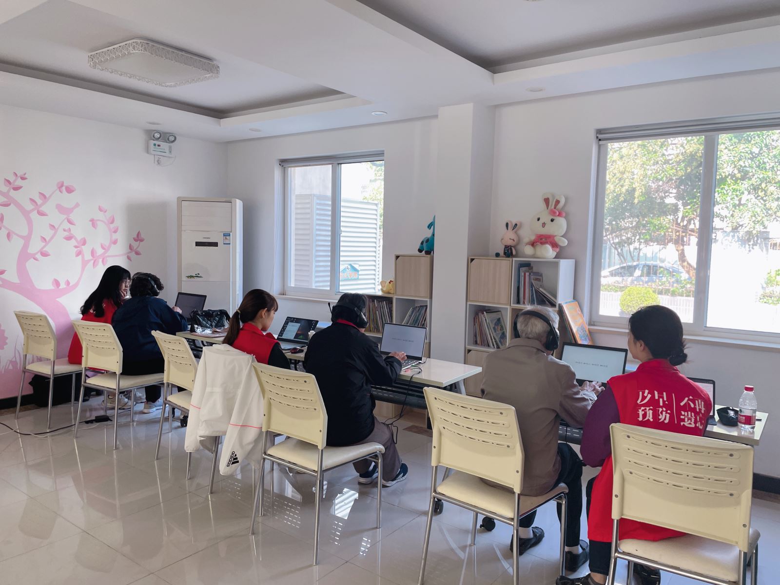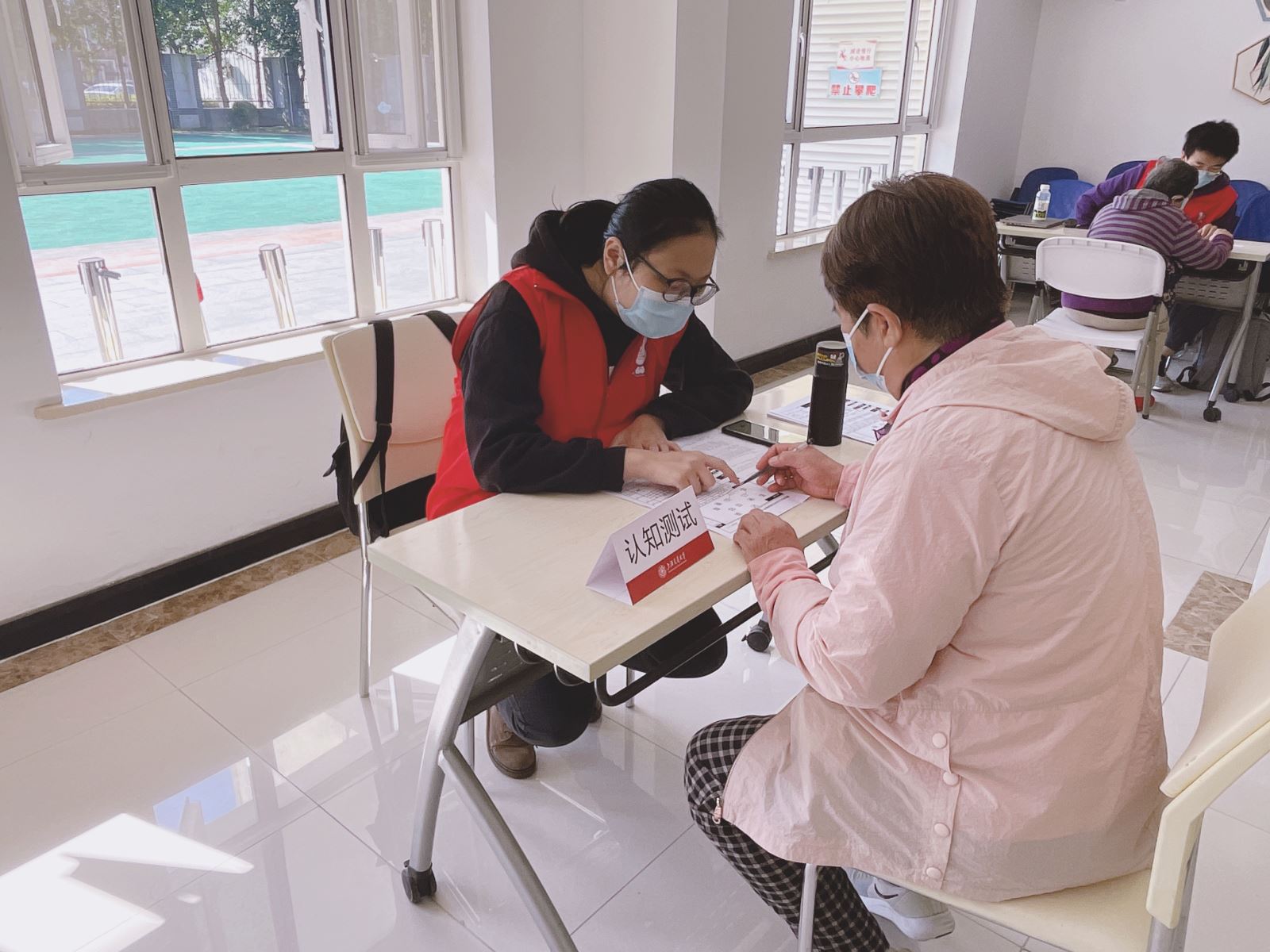志愿者为居民提供一对一的听力、认知和情感能力评估服务