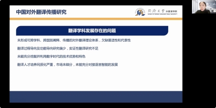 吴赟教授分析了我国对外翻译传播研究的现状,探讨了中西话语落差的原因,列举了目前翻译学科发展存在的问题,提出在不断变化的国际舆论语境和传播技术环境中,既需要从学理层面剖析对外翻译和传播路径,也需要从实践层面加强以翻译能力、传播技巧以及语料库、融媒体为代表的应用工具建设。