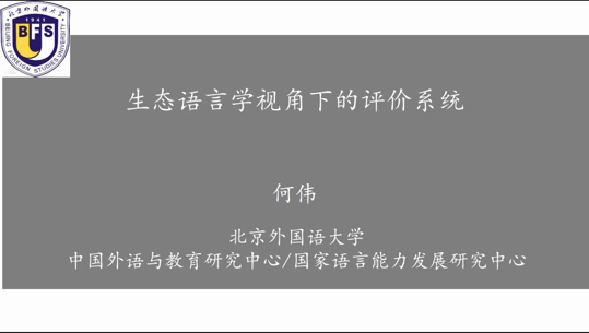 何伟教授的报告题目是“生态语言学视角下的评价系统”,由于晖教授主持。报告立足生态话语分析的生态哲学观,拓展了评价系统,包括为态度系统增加情感缘起、判断标准和鉴赏对象三个特征,为介入系统增加取向、来源和内容三个特征,为级差系统增加参考特征。
