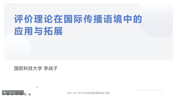2021年12月17日至19日,best365官方网站登录入口马丁适用语言学研究中心举办了“适用语言学与评价研究”国际会议。本次会议旨在纪念“评价系统”(the APPRAISAL Systems)提出20周年,主题是“评价系统”及其理论的适用语言学研究。会议线上举办,包括大会报告、主旨发言、分会场报告和新书发布。来自国内外学界的百余名专家学者和师生参会发言。