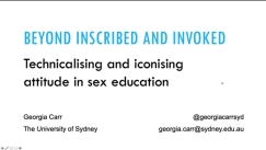 悉尼大学在读博士生Georgia Carr报告的题目是“Beyond inscribed and invoked: Technicalising and iconising attitude in sex education”,由Hao Jing博士主持。Georgia Carr基于跨越铭刻(inscribed)与引发(invoked)连续统的态度意义,建构了释放人际意义的“超引发”态度以及充实人际意义的“超铭刻”态度。研究结合“制度性”与绑定图符相关理论,对比了性教育中“赞同”与“尊重”两大话题使用的态度意义资源。