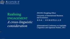 张冬冰博士报告的题目是“Realising ENGAGEMENT: A cross-linguistic consideration”,由Thu Ngo博士主持。研究对比了介入在英语、汉语普通话和科尔沁蒙古语三种语言中的一致式实现方式,讨论的词汇语法系统包括极性(POLARITY)、情态(MODALITY)、评估(ASSESSMENT)和语气(MOOD)。研究指出介入系统为跨语言对比和类型学研究提供了有效的分析视角。