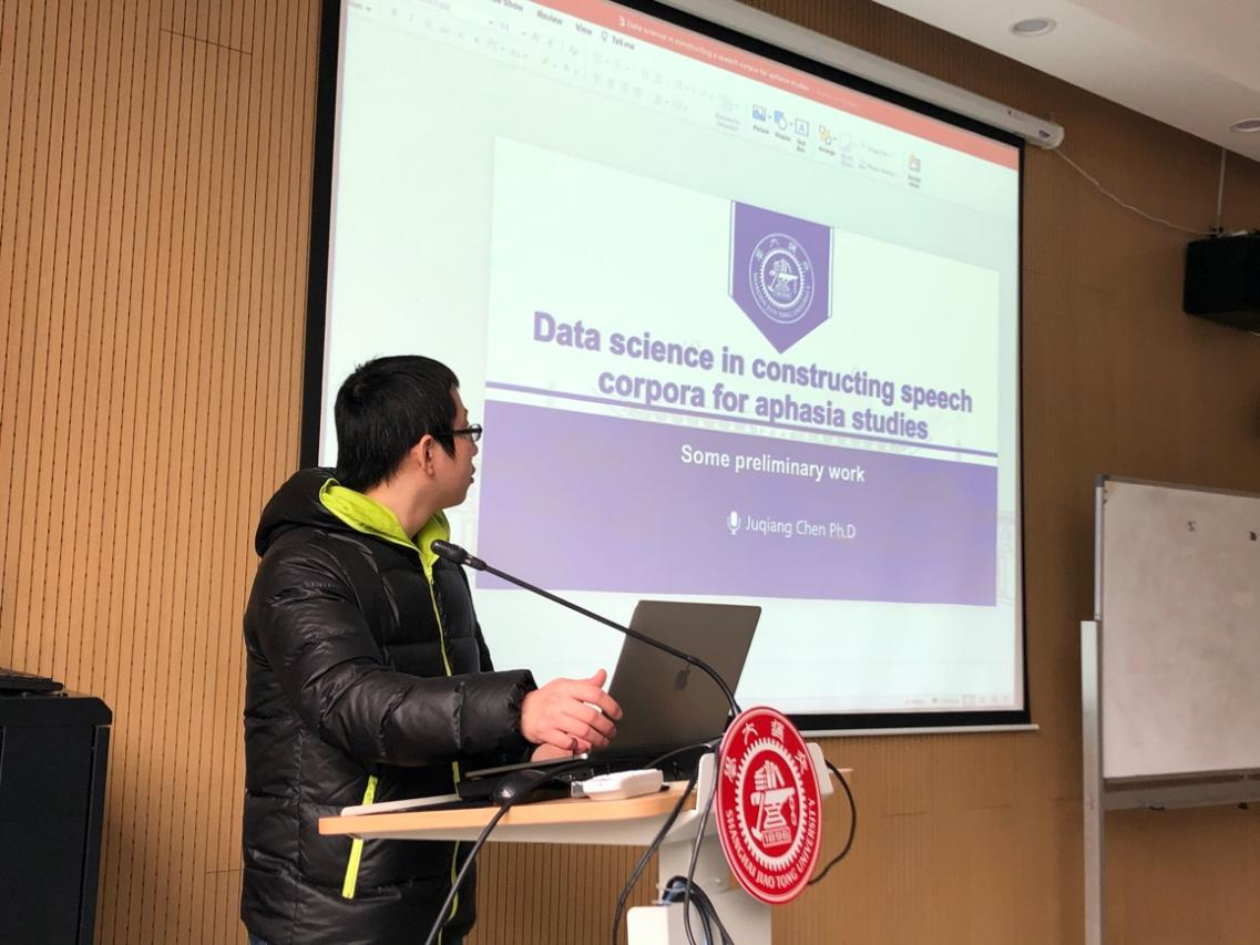 新学期伊始,午餐会继续开展。2022年2月17日中午12点,best365官方网站登录入口第6期“语言学午餐会”在best365官方网站登录入口107教室顺利举行。本期主讲者为学院博士后陈居强,他报告的题目为“Data science in constructing speech corpora for aphasia studies: some preliminary work”。交大、华师大外院的师生参加了此次午餐讨论会。
