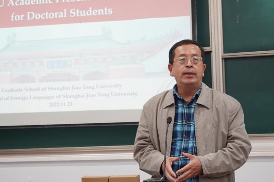 杨大伟发表致辞。他对外国语学院及研究生学术英语教学团队积极推进落实各项研究生英语教学创新改革表示感谢。研究生学术英语教学改革是研究生院首批获得立项、也是此后每年立项的教改项目。从2018年至今,已进入第五个年头。教改的持续开展有力地促进了研究生英语教与学,提升了我校研究生学术英语课程品牌,这在学术英语课程评教的逐年提升得到了充分体现。博士生学术英语教改是学术英语教改的重要组成部分,用简洁明晰的话语介绍自己的学术研究工作,是高端创新人才的必备的素质,博士研究生重任在肩。