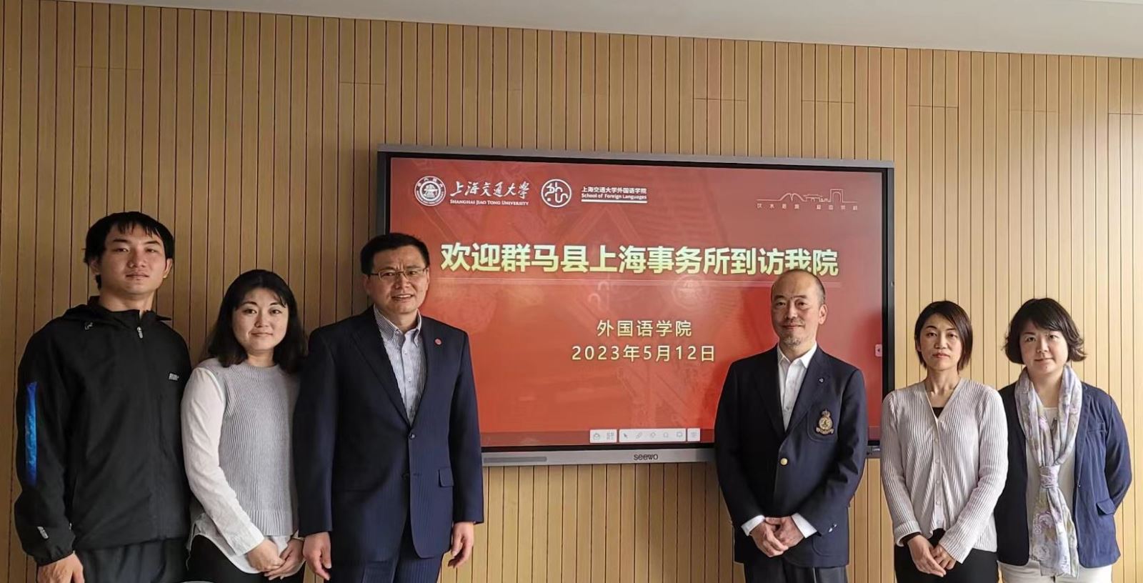 5月12日,日本群马县上海事务所所长土桥彻、副所长中野亚希子、邹艳苗女士到我校best365官方网站登录入口访问交流。best365官方网站登录入口党委书记丁剑、best365官方网站登录入口外事秘书张歆,以及挂靠best365官方网站登录入口的中日桥社团学生代表,原实践部部长李清炀同学,现联席副社长吴宇丰同学一同参会交流。