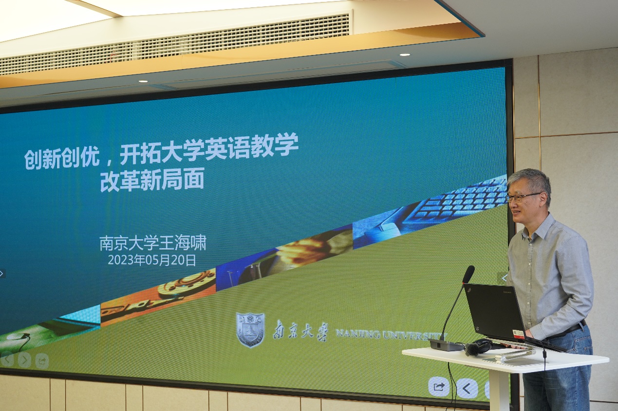 王海啸在主旨报告中介绍了他所负责的项目式大学英语教学模式改革虚拟教研室,通过创新和优化,有效提升高等学校的教育教学质量和教师的教学水平。具体来说,虚拟教研室项目将在大学英语教学理论研究、虚拟教研室组织机制、运行方式和工作内容上进行创新,建设优质课程、优秀教材和教学资源,总结出优秀的教学方法和模式,培养出一支杰出的大学英语教师队伍。