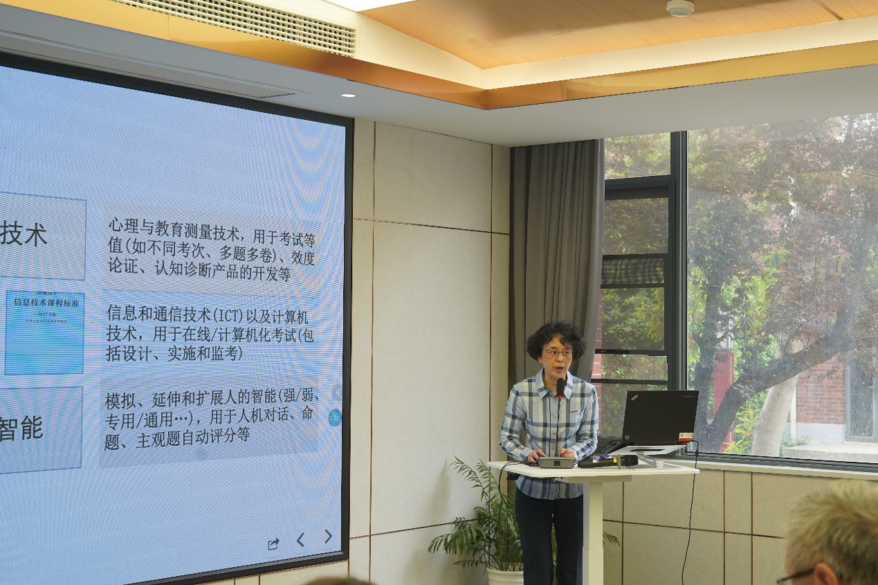 金艳在发言中强调,随着信息技术和人工智能技术的迅猛发展,教育模式正在发生重大变革,语言测试领域亟需探索新技术的应用,以更好地适应教育模式的转变。金艳随后回顾了大学英语四、六级考试中的技术应用,展示了技术在大规模语言测试发展中的重要作用。