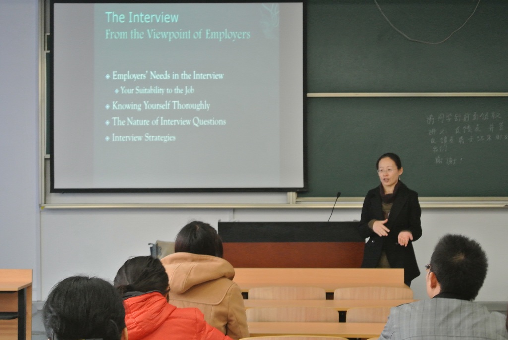 本期工作坊主题为英语模拟面试。首先主讲老师邹辉通过一段求职视频向同学展示了应聘者在面试中应注意的一些问题。紧接着邹老师就求职者如何进行职业规划、如何回答面试官的问题,以及面试官希望通过面试了解求职者哪些方面的素质等问题进行了细致深入的讲解。随后多位英语老师与同学展开了热烈讨论,为同学如何应聘自己感兴趣的职位提供指导和建议。