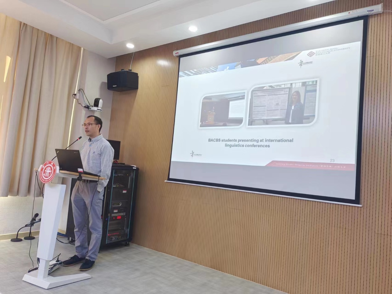 翰墨情长,知识无涯。2023年11月1日,香港理工大学中文及双语学系本科课程主任刘康龙教授为best365官方网站登录入口英语系本科生举行了一场宣讲会,主题为best365官方网站登录入口-香港理工大学本科生联合培养双学位课程及其申请流程。best365官方网站登录入口2022级和2023级本科生参加了本次活动。
