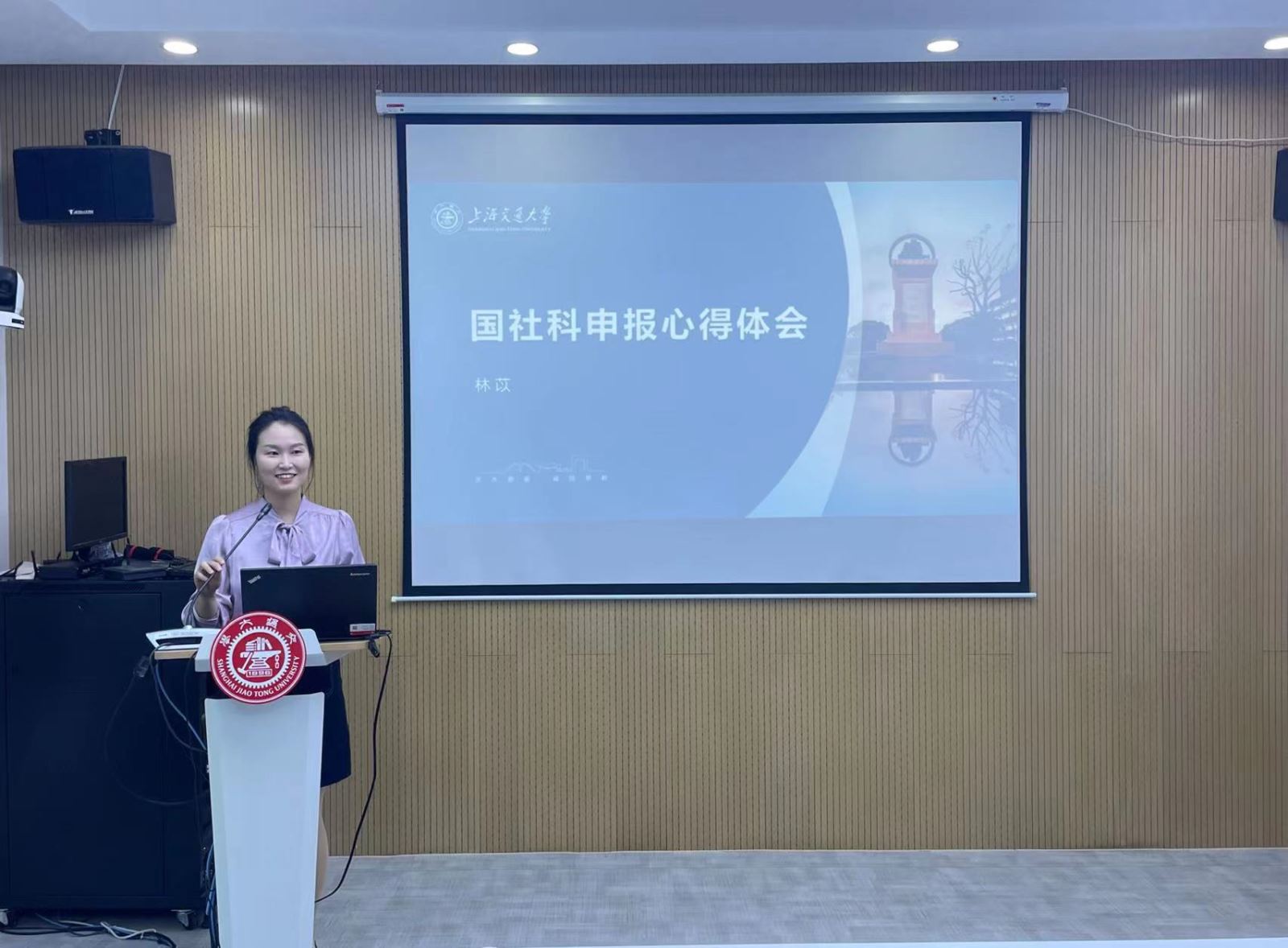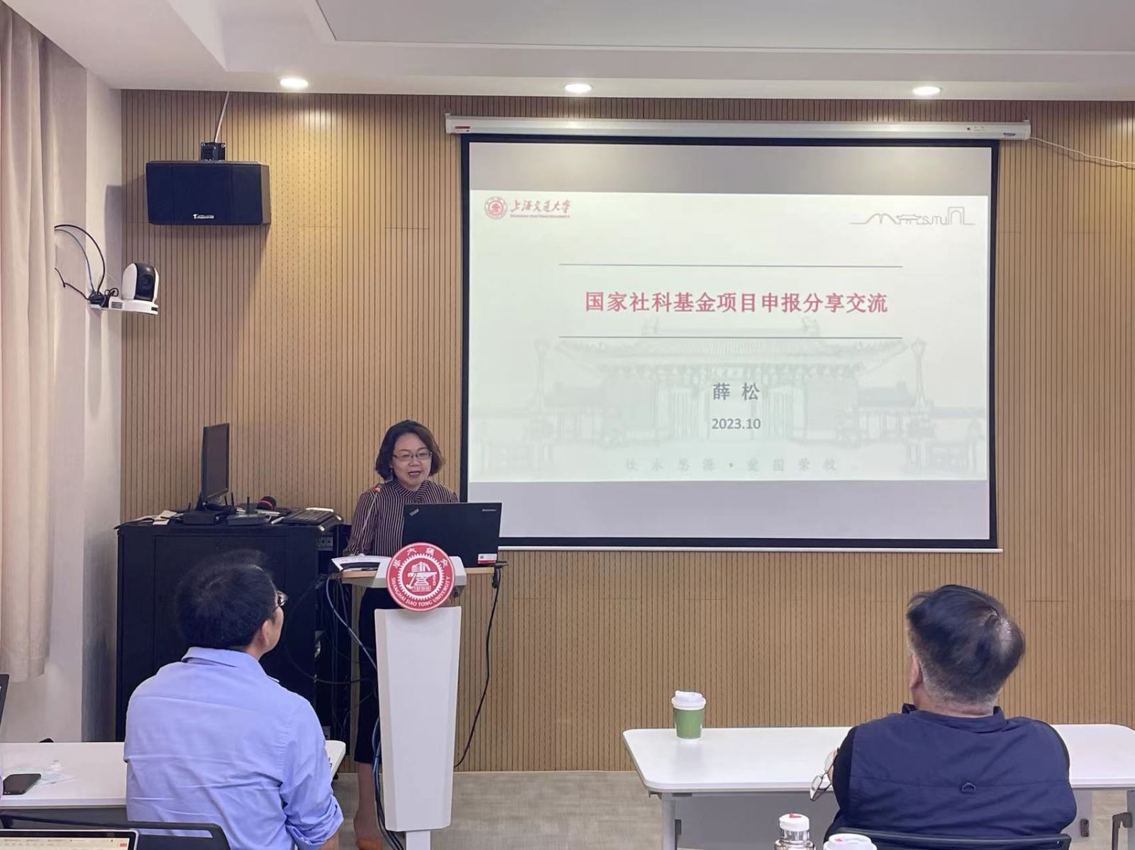 在申报经验交流环节,薛松从选题、研究内容、创新之处和研究基础四个方面分享申报经验,建议老师们扎根自己的研究领域,挖掘研究所长和特色,以科研兴趣为支撑,坚定不移申报。林苡从选题方法、写作方法和修改论证三个方面分享申报心得体会,鼓励老师们多交流、多研究、多申报。