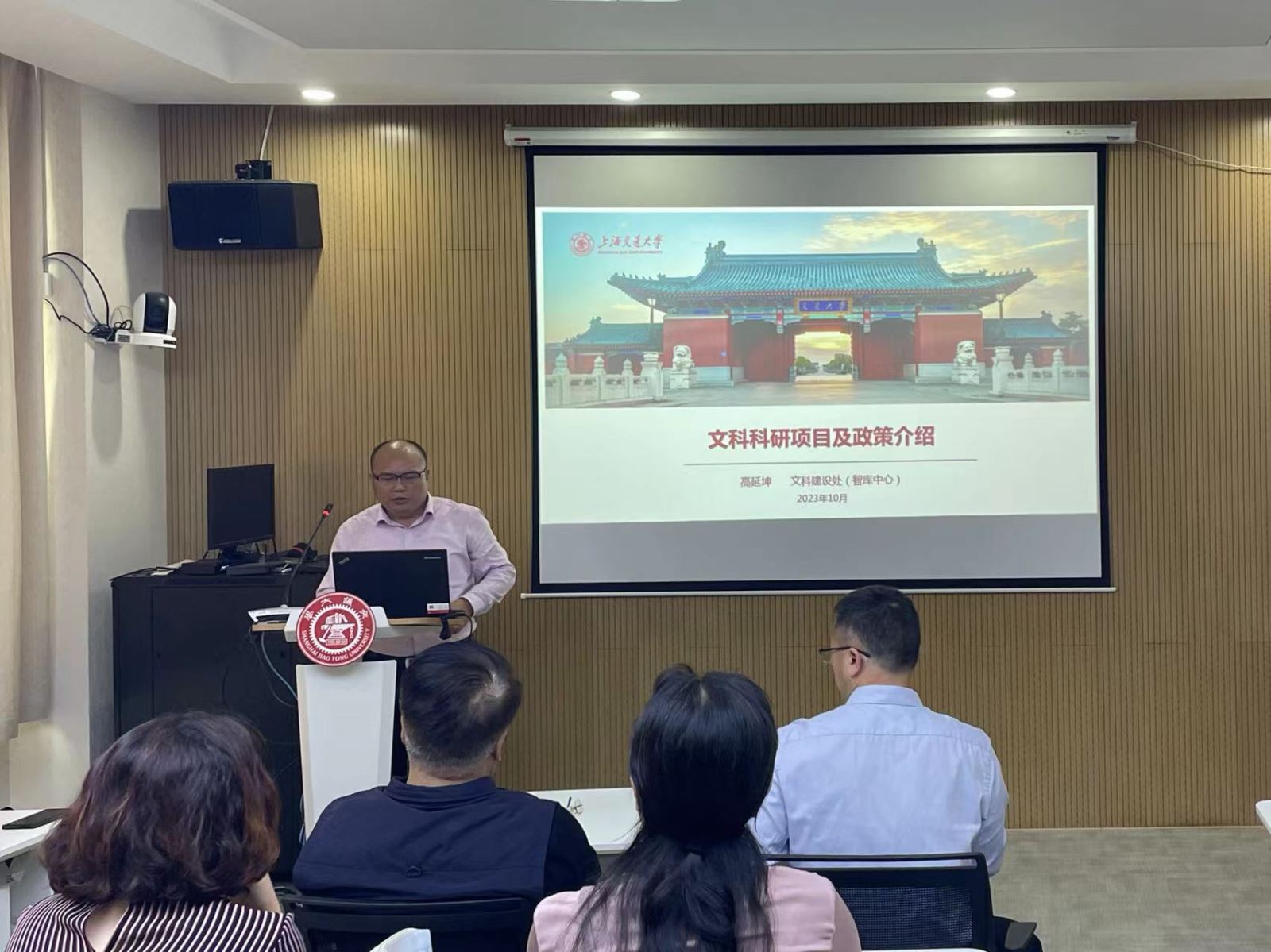 会上,高延坤作“学校文科科研项目及政策介绍“,介绍了人文社科重要科研项目及奖项,鼓励老师们选择合适的项目和学科方向积极申报。他总结了学校、学院近六年的国家社科各类项目申报、立项总体情况,分别从院系立项、学科立项、项目类别立项情况做了详尽分析,建议老师们立足本学科,多学科涉猎,鼓励青年教师保持科研活力,争取再创佳绩。