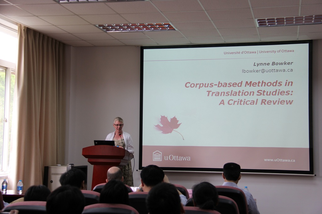 来自加拿大渥太华大学的Lynne Bowker教授首先做了题目为“Corpus-Based Methods in Translation Studies: A Critical Review” 的主旨发言。她指出,实证的方法可以用来证实或证伪凭直觉得出的结论,通过语料库的建设和数据的提取,来验证假设。但是她也指出,在做解释的时候,要力求客观,认识到语料存在的局限性,过分概括。