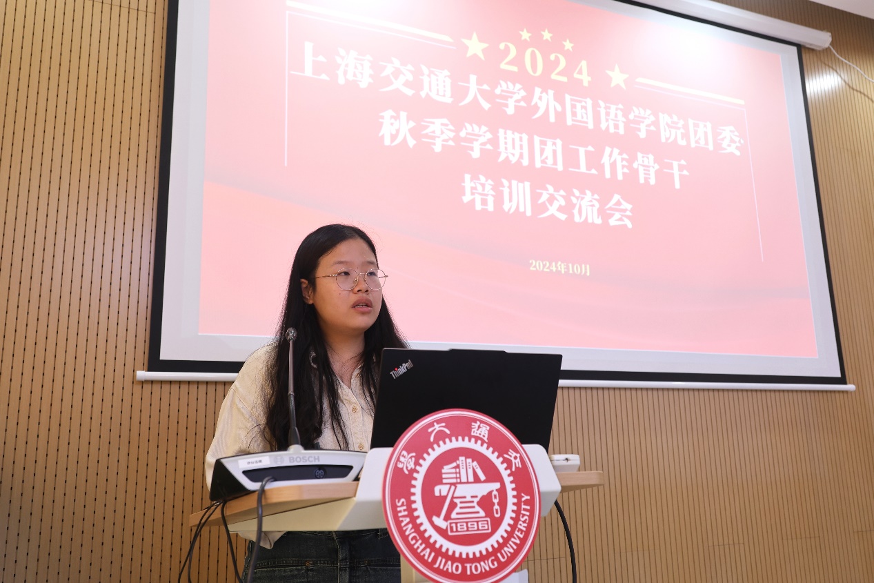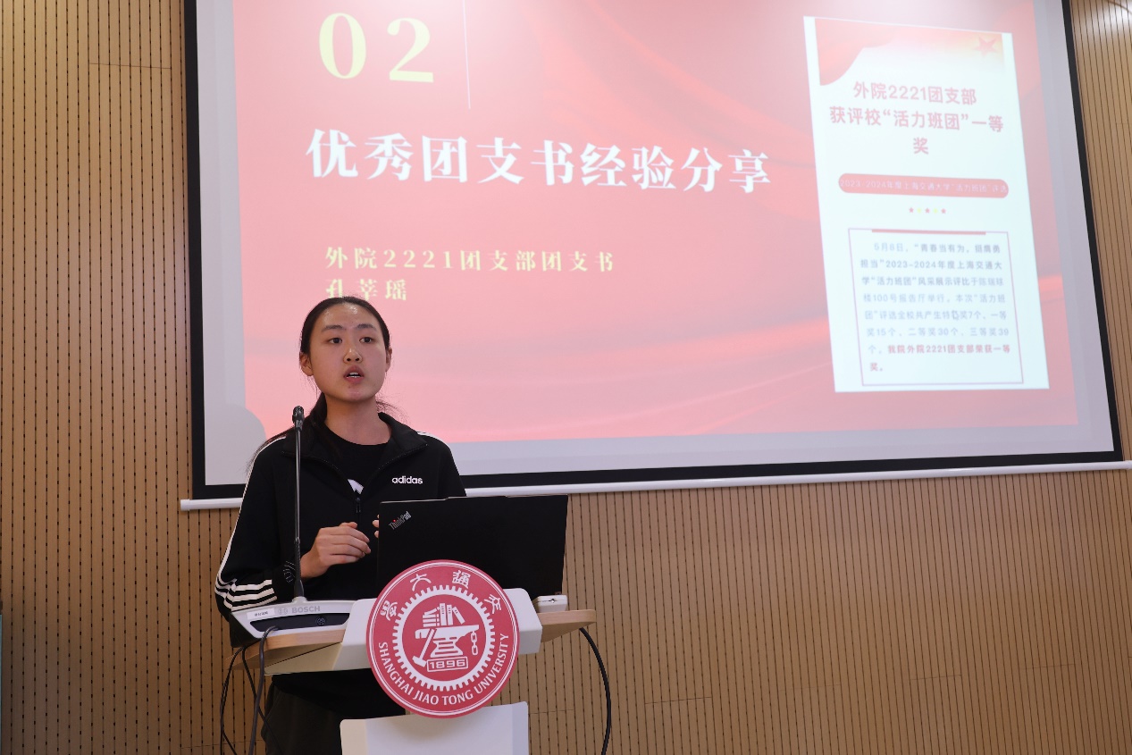 在优秀团支书经验分享环节,外院2211团支书孔莘瑶分享了自己担任团支书工作的心路历程以及开展团支部工作的经验。
