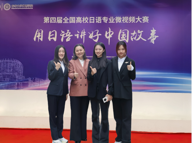 近日,2024年第四届全国高校日语专业“用日语讲好中国故事”微视频大赛圆满落幕。经过激烈角逐,由我院日语系教师王琳指导、日语系本科生21级闫冬、23级杨千益、张思渺三位同学组成的参赛队伍在决赛中表现优异,荣获全国二等奖。