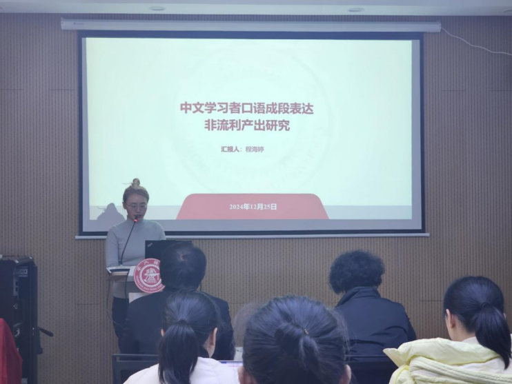 在主旨分享环节,程海婷以“认知控制对中文二语学习者口语非流利产出的影响研究”为题,指出在既有研究中,一语者的非流利产生原因的理论讨论已经迭代更新出不同的理论分支,但二语的口语自我监控理论讨论较少。对此,她的研究采用Stroop反映任务探讨了认知控制能力对高水平中文二语学习者非流利产出倾向性的影响,为理解二语口语产出及自我监控机制研究提供更多实证证据。