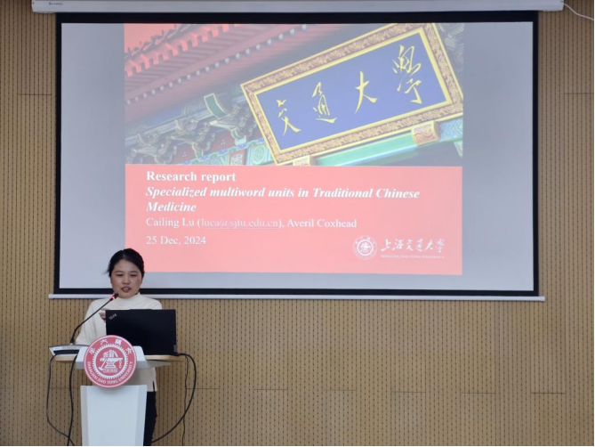 陆彩玲作题为“Specialized multiword units in Traditional Chinese Medicine”的演讲发言。她认为,语言学知识有助于提升中医理论、文化和教学的海外传播效能。对此,她的研究基于中医教材和期刊文章的语料库,编制了一份包含538个中医术语的词组搭配和词块表,以多词单元为例展示了语言如何影响海外中医学习者的学习和理解,通过多词单元的构成类型划分揭示出中医术语承担的诊断、治疗和理论功能,并对中医文化传播和海外教学提出了建议指导。