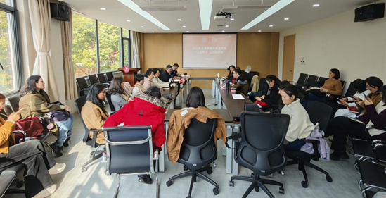 张怡凡老师作2024年度学院学生工作总结分享,汇报学院整体情况。她展示了学院在党建、团学、事务、就业等学生工作板块的卓越表现与突出亮点,代表学院对各位老师的辛勤付出表示感谢,同时鼓励大家来年再接再厉,矢志奉献于立德树人之路。